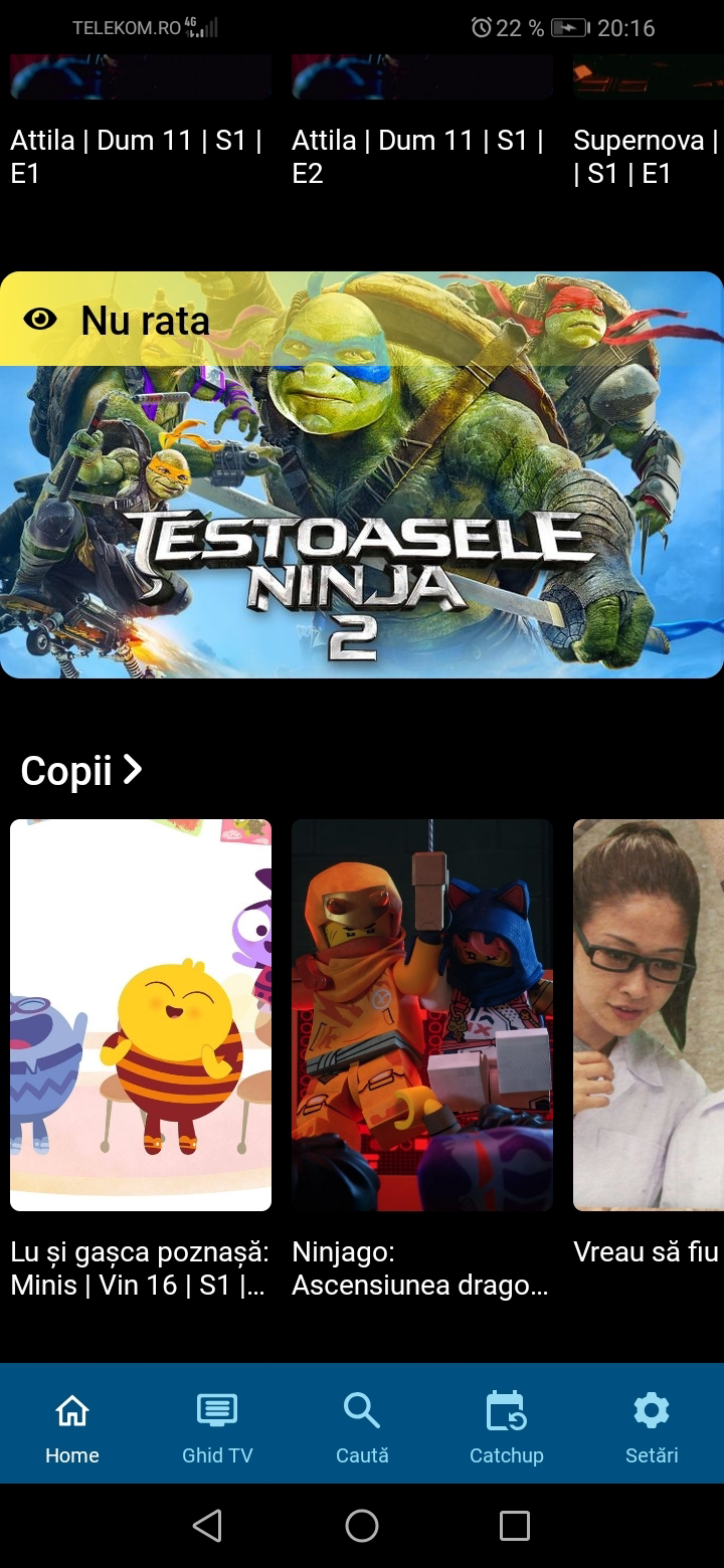 Pe partea de catch-up a extins lista cu Eurosport 1 HD, Eurosport 2 HD, TV Paprika, Discovery HD, TLC, Viasat Nature HD, BBC Earth HD, Viasat Explore HD, Viasat History HD, HGTV HD, Viasat Kino, CBS Reality, Minimax, JimJam, MTV Global, Mezzo, CNN și Național TV. Partea proastă a lucrurilor este că pe versiunea de pe mobil nu funcționează funcția la aceste canale iar pe versiunea de pe Android TV funcționează, însă are momente când nu merge. La momentul redactării acestui articol funcția catch-up a fost eliminată de pe aplicația de pe Android TV, cel mai probabil pentru mentenanță.